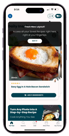 Personalization engine offering recipe recommendations based on user data, saved cookbooks, and preferences, alongside community content from global culinary experts.